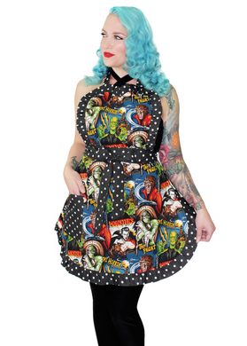 Pink Spiderweb Heart Black & White Striped Vintage Inspired Apron